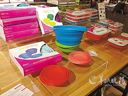近年來,色彩繽紛,造型可愛多樣的硅膠廚具迅速走紅,盡管價格偏高,卻還是大受歡迎。“這些杯子、碗、保鮮盒都是用食用級硅膠做成的,絕對放心,還能隨意折疊”。在正佳廣場生活概念館的一位工作人員介紹說,硅膠材質柔軟,可折疊,可彎曲,不易變形,用它制成的可折疊飯盒,一只手就能把飯盒拍扁收納,雙手輕輕一抖即可充分打開,方便攜帶,輕松收納。而且硅膠材質不易沾油污,清洗起來非常方便。多格設計飯菜間不會粘連、串味。七種花色鮮艷靚麗,這樣的飯盒送給同事、好友,是不是特別又貼心呢?