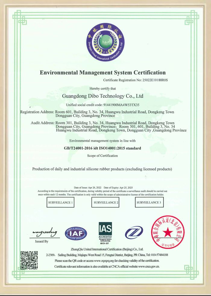 廣東帝博科技有限公位于2019年起施行每年檢測認證報告,由于硅膠制品行業屬于環保安全行業,客戶的需求以及反饋都決定我們的實力,目前我司已認證ISO9001、ISO14001、ISO45001、迪士尼認證、FDA、ROHS、LFGB、CPC等一系列檢測認證