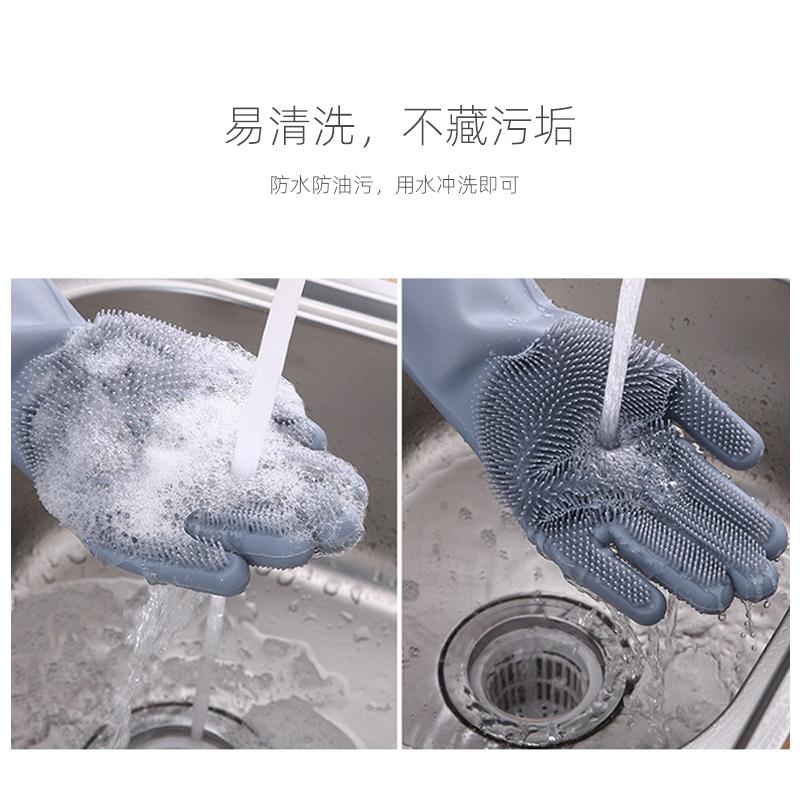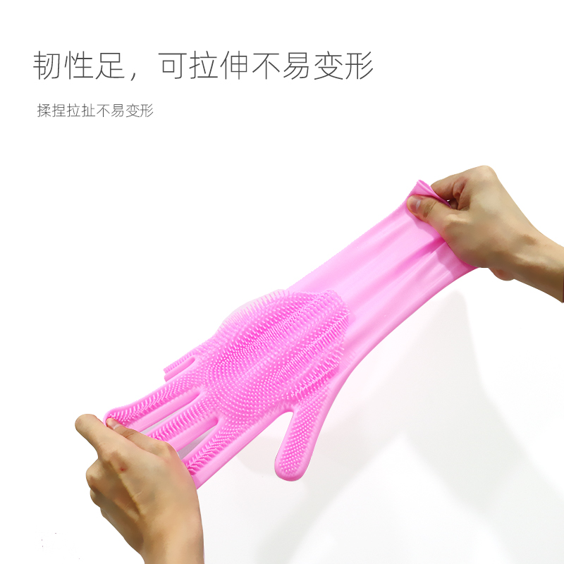 硅膠清潔手套,生活日用品,掌心毛刷可清潔多種物品,柔軟耐磨可清洗不同產品上的殘留物,長筒手套可清理很大更深的臟污,加厚耐磨設計,使用壽命良好,可長期接觸油污液體不發生任何壽命變化,可在高低溫情況下正常使用。