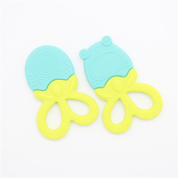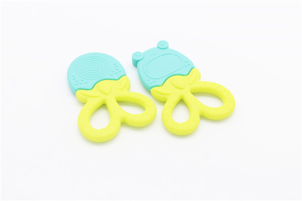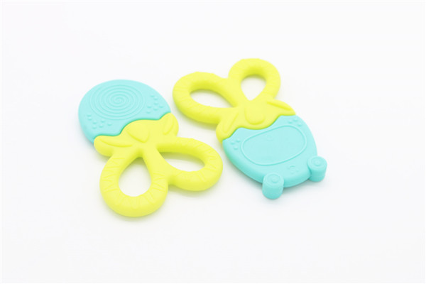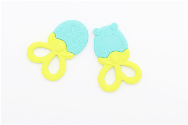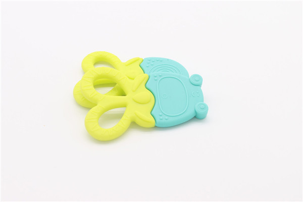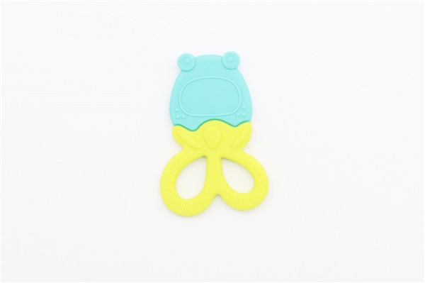 卡通青蛙硅膠牙齒矯正器簡稱硅膠牙膠,磨牙棒,此款牙膠主要采用雙色粘接成型工藝制作,有良好的生動性與立體感,讓嬰兒寶寶愛不釋手,材料安全環保,可放心與口腔身體皮膚接觸。
